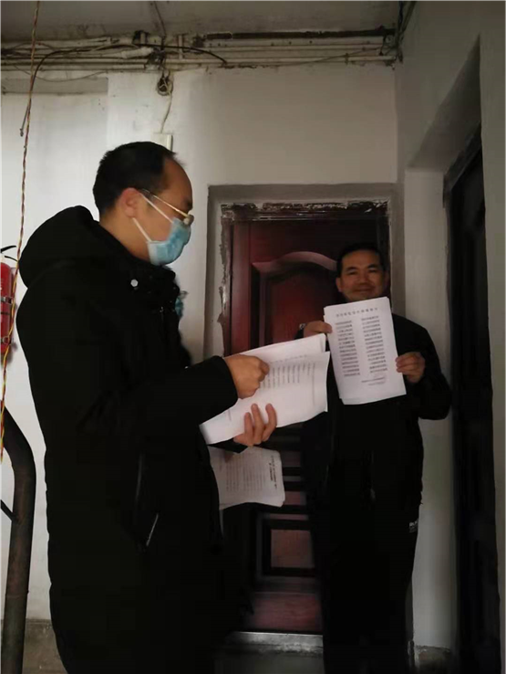 工作人員進家屬區逐戶發放傳染病防控宣傳材料